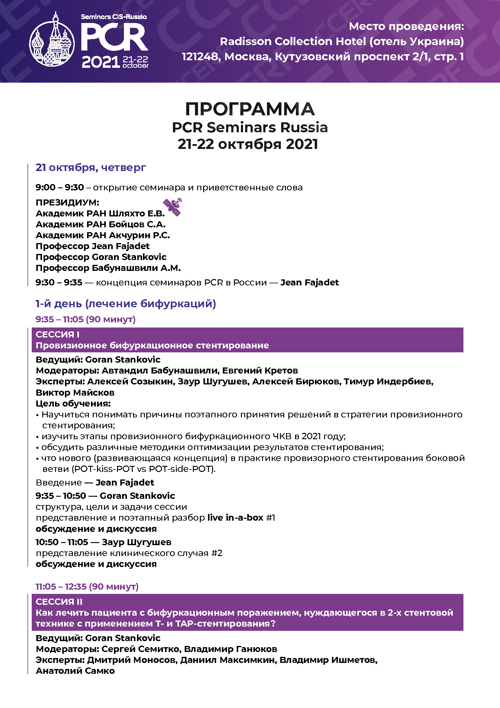 | 12:35-13:35 | зал Джадкинс | Эндоваскулярные операции на сосудах шеи и головного мозга | |
